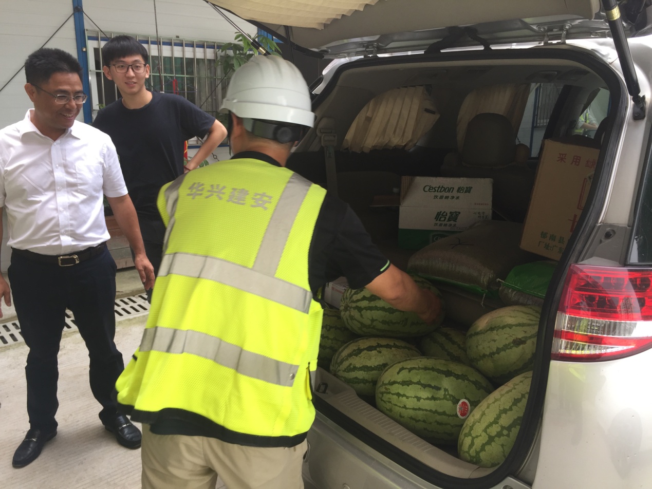 8月9日上午,副总裁吴先史带队前往完美体育云谷项目部,给项目全体管理及施工人员送去西瓜、绿豆、凉茶等防暑降温用品,将集体的关怀与问候带给员工。在项目现场,吴总叮嘱大家要注意防暑降温,工作要劳逸结合。项目全体员工要克服各种不利因素,保证工程进度和质量。